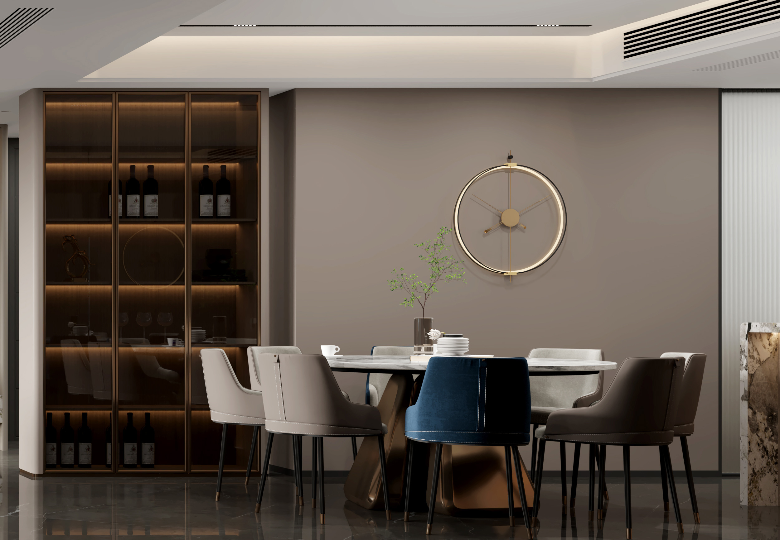 此風格通常采用對比、統(tǒng)一、節(jié)奏、韻律等形式美的設計語言,主導空間,突出現(xiàn)代形式感。