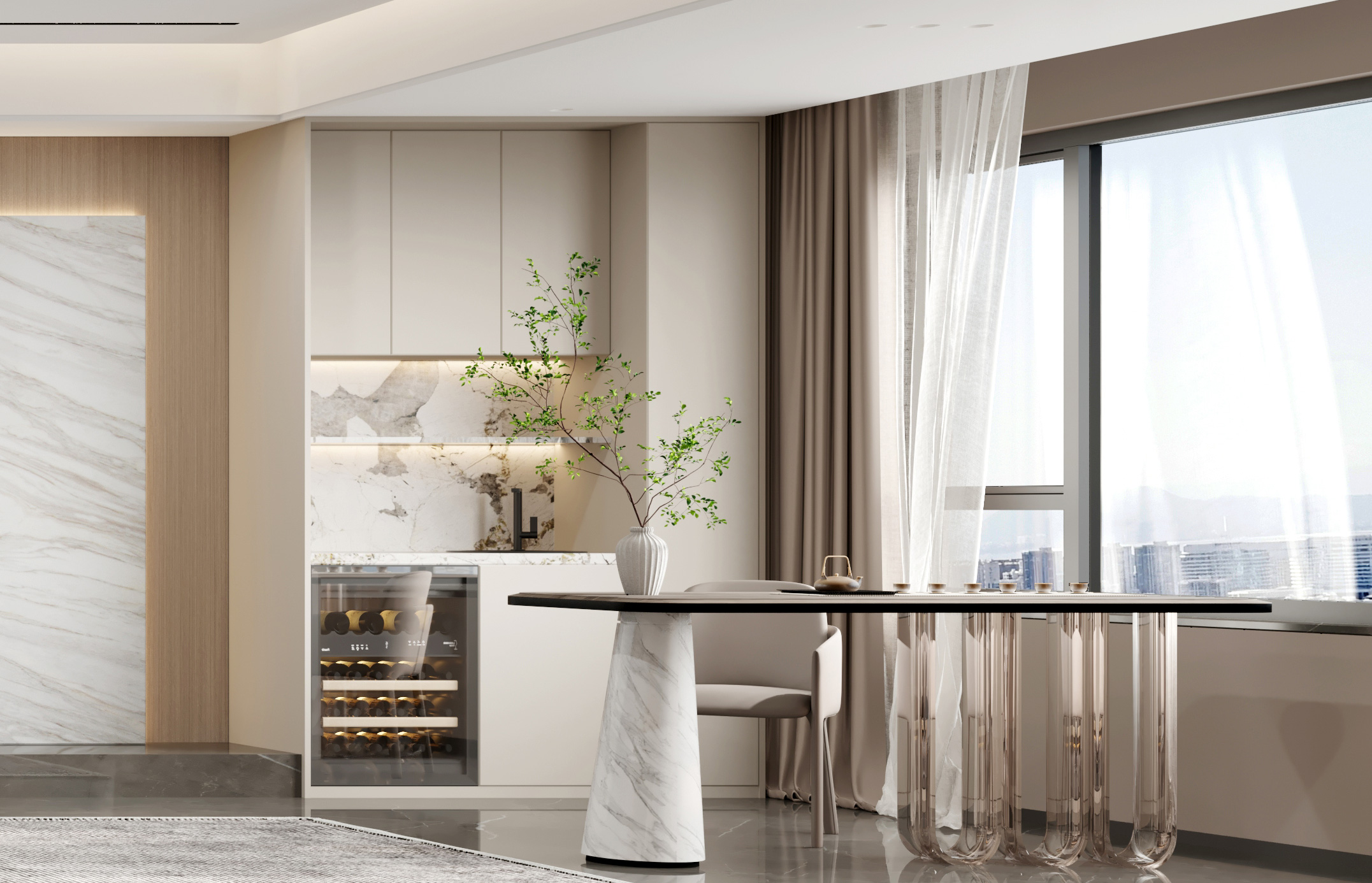 將室內(nèi)的各種設計元素在視覺上精簡到最少,減少裝飾、大尺度、低限度地運用形體造型。