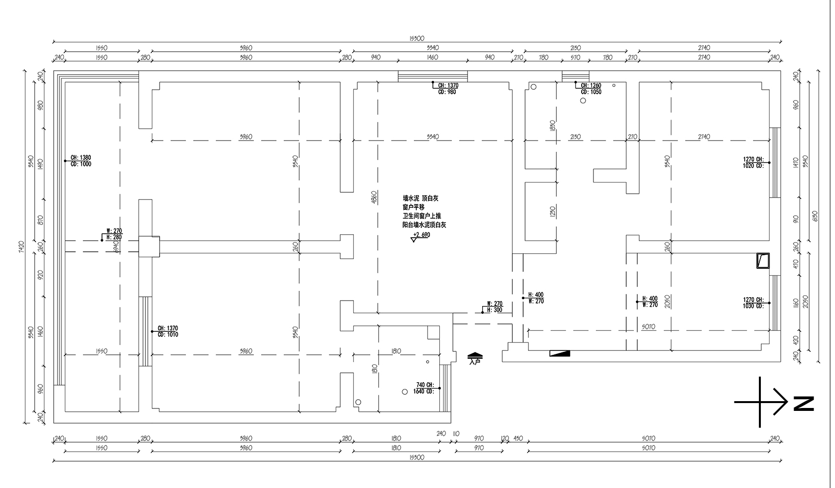 4、拆除北側臥室正對的墻體(干區(qū)墻體)