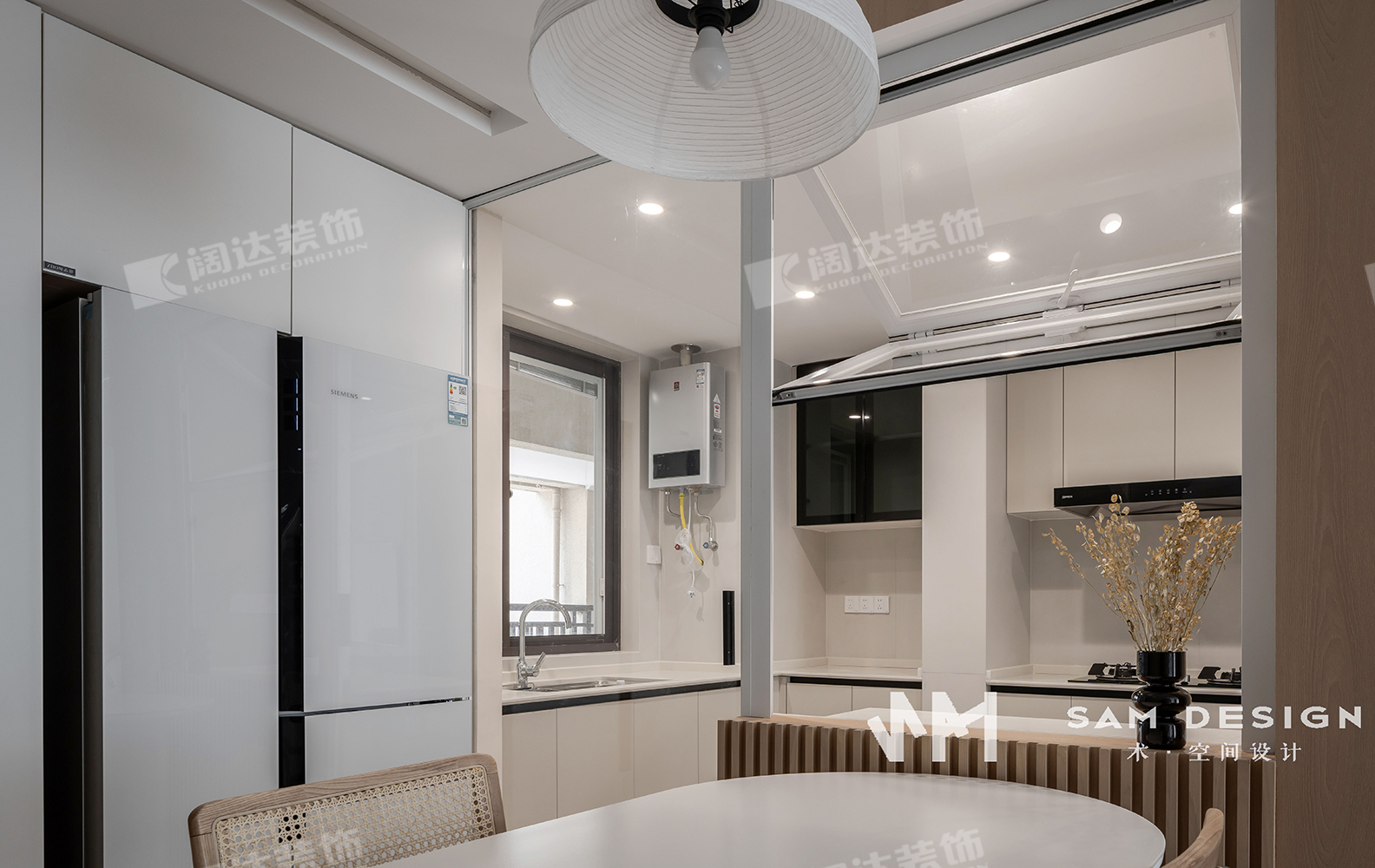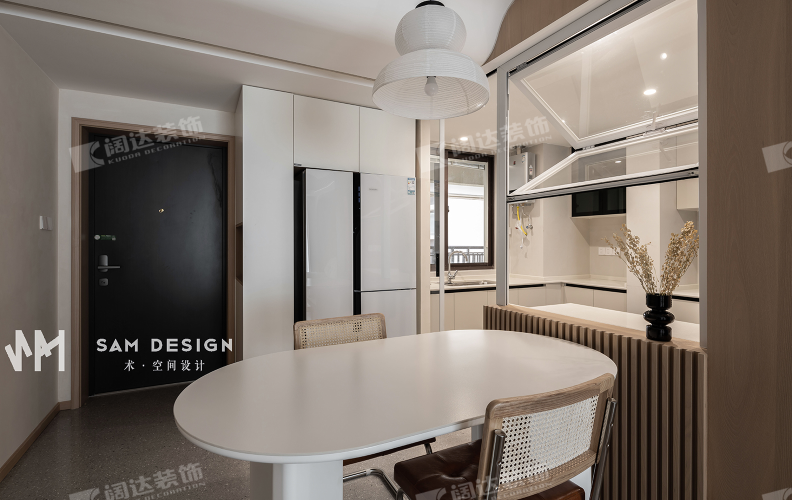 整個(gè)戶型中規(guī)中矩,設(shè)計(jì)師在功能分區(qū)時(shí),大膽地打破傳統(tǒng)廚房餐廳概念,釋放空間。